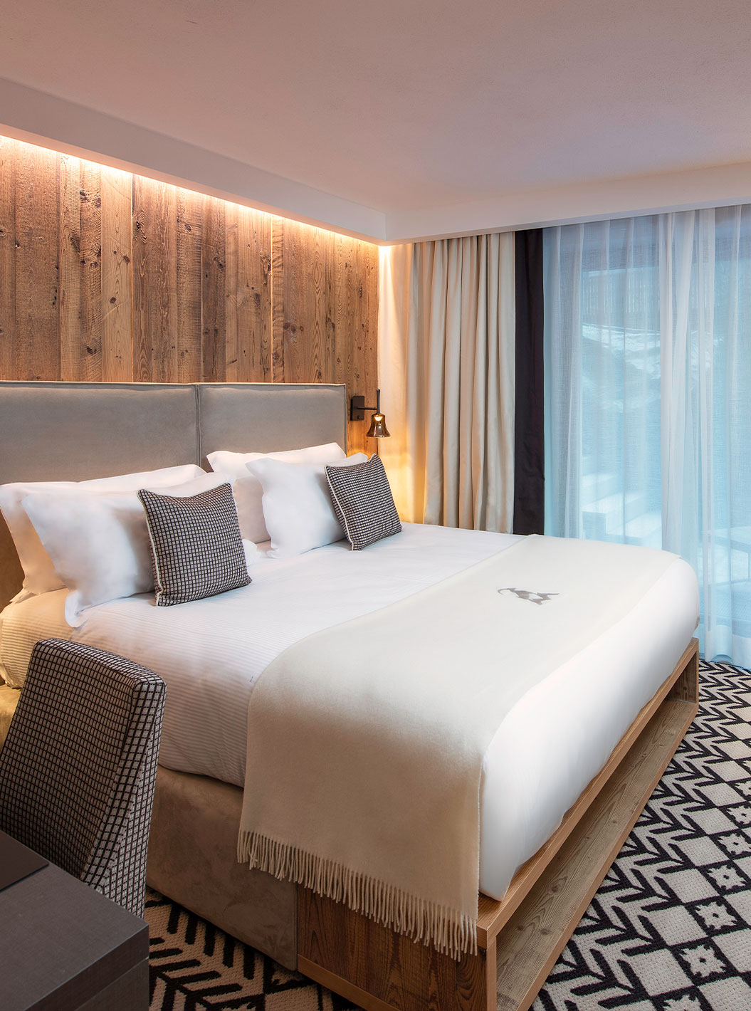The hotel offers a ski butler service during the winter season, a luxury spa with mountain-inspired treatments, and a concierge service specializing in adventure and sports experiences. Babysitting and dog-sitting services are also available (reservation required).